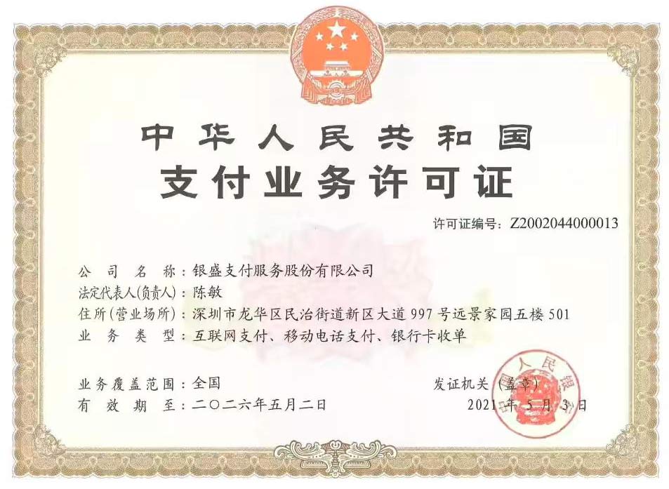 银盛支付牌照(支付业务许可证),银盛支付服务有限公司支付业务许可证,银盛支付牌照许可证编号:z200204400013